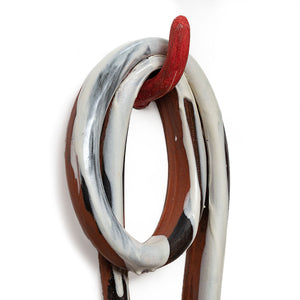 Her recent Collapse Series, developed during the stillness of COVID lockdowns and against the backdrop of climate anxiety, reflects a shift toward more expressive, gravity-led forms. Thrown pieces are deliberately weakened to the point of collapse, then reconstructed through hanging and natural deformation. The resulting forms are shaped not only by Sawyer’s hand but by gravity, time, and clay’s own “material memory.” Glazed surfaces are fluid and earthy, evoking the landscape and the kiln’s transformative fire.