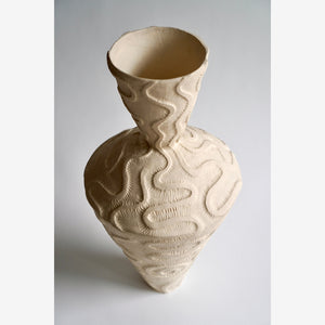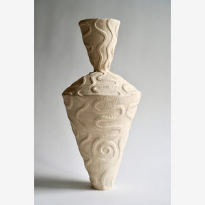 Inspired by the natural world and personal memories, Mustika’s ceramics act as vessels for stories translated through intricate textures, motif exploration, and subtle repetition. Her practice embraces the beauty of imperfection, celebrating the unique marks of the artist’s hand and the character that emerges from irregularities. Each work is inherently one-of-a-kind.