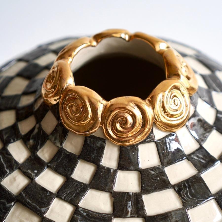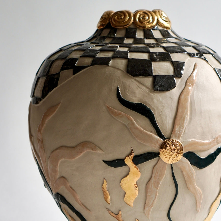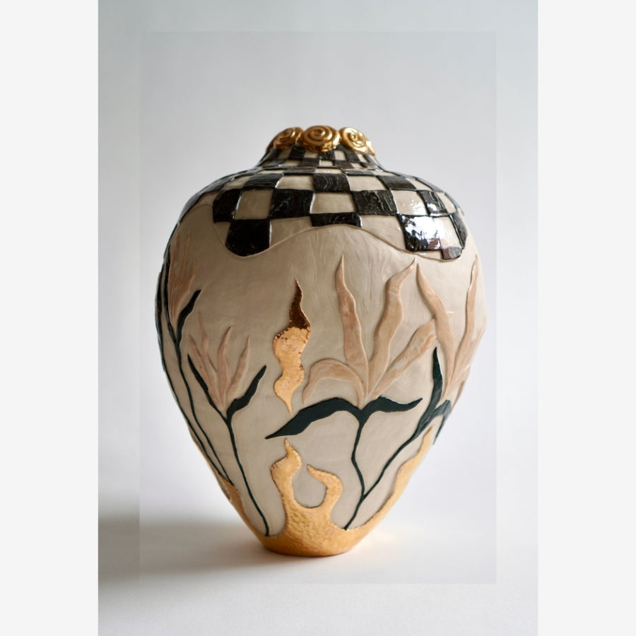 The Ukiran (carving) collection draws inspiration from Balinese art traditions, particularly the rich history of carving integrating recurring motifs from Balinese art and batik designs, featuring mystical floral imagery, folkloric characters, and repetitive patterns. Life Cycle Vessel speaks to the cycles of growth, rest, and rebirth that move through both nature and the human experience, reminding us that every ending carries the promise of new begginings. This is a hand carved, painted watertight vessel.